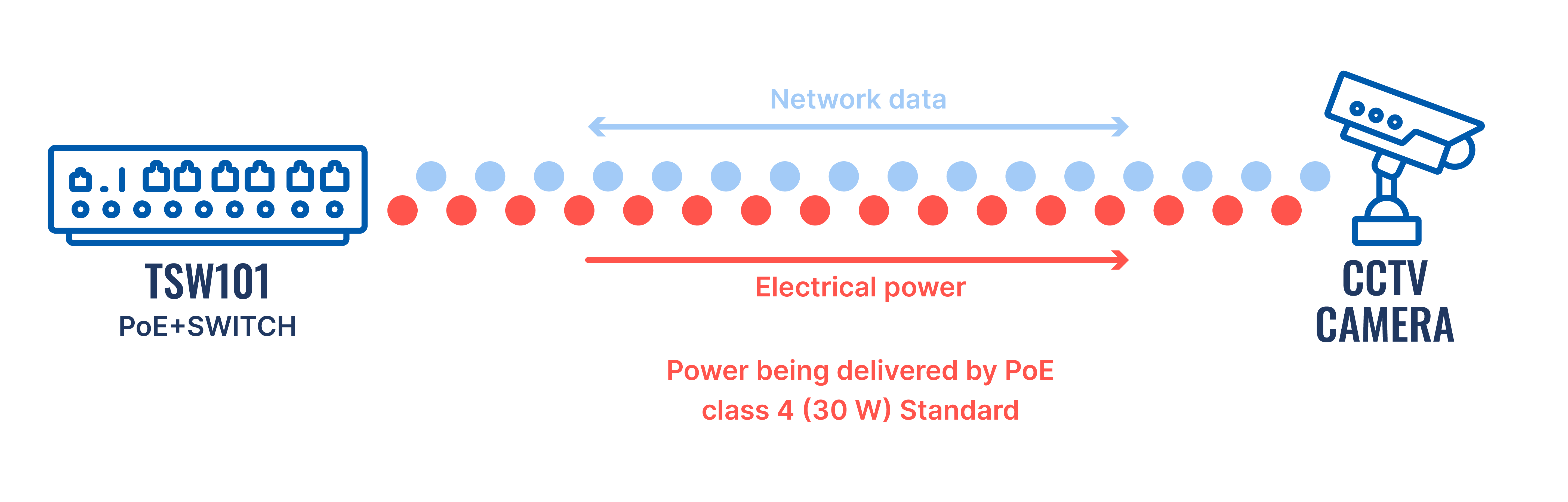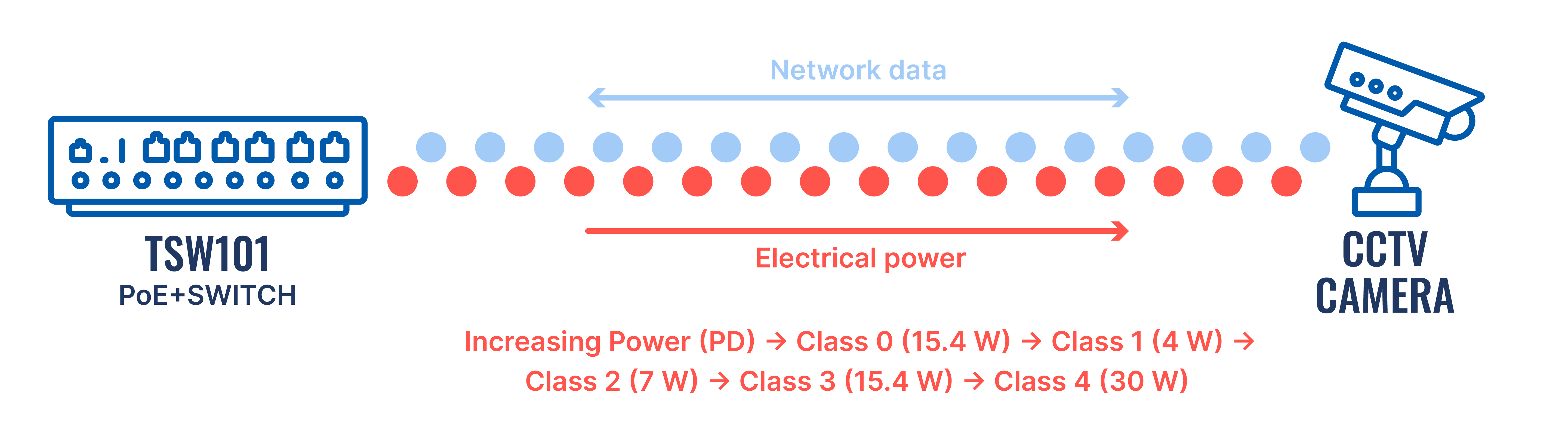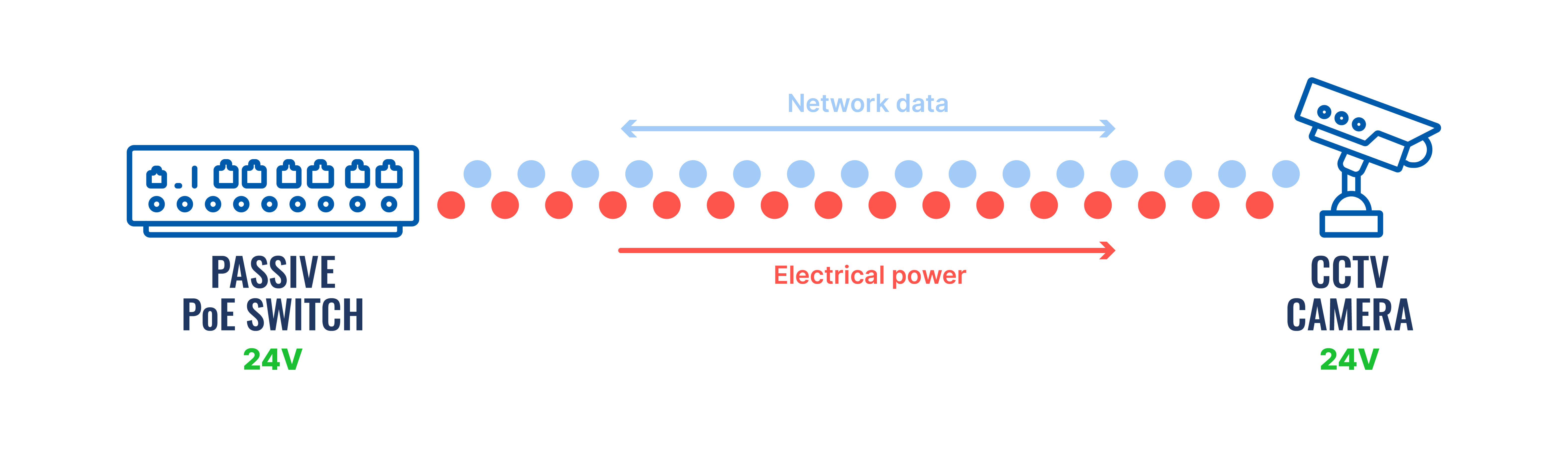 - Power Delivery: Supplies a fixed voltage (e.g., 12V, 24V, 48V) directly through the Ethernet cable without negotiation.
