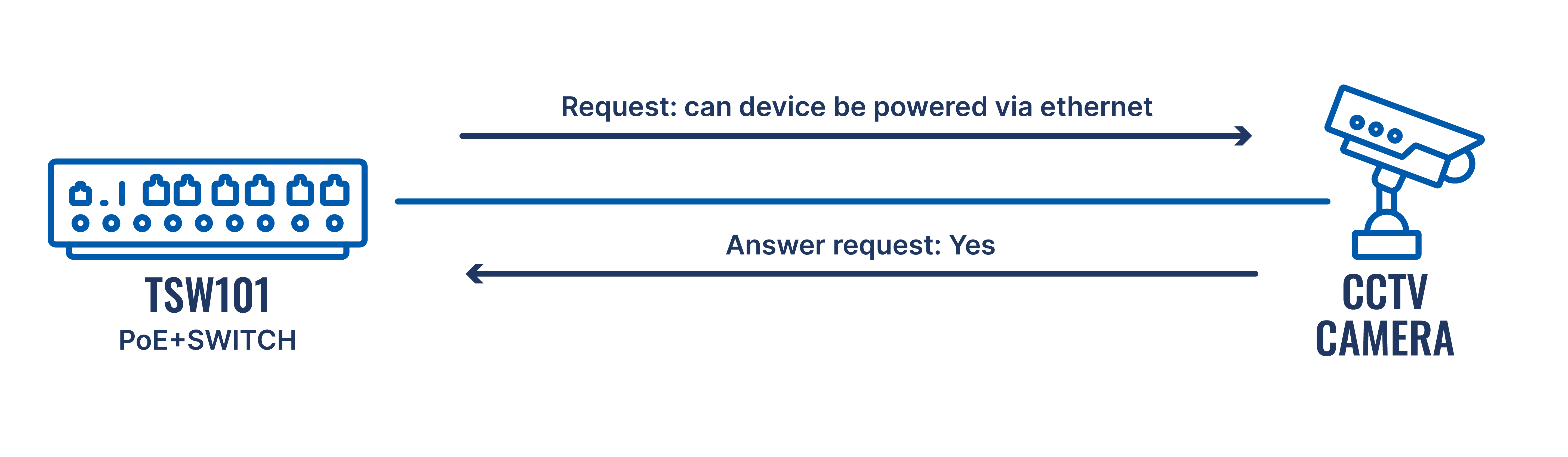1. Detection: The Power Sourcing Equipment (PSE) sends a small voltage to detect a compatible Powered Device (PD).