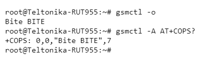 As another example, lets try to get network operator information. For this task you can use either gsmctl -o or AT+COPS?. For this example we'll use them both and analyze the differences:
