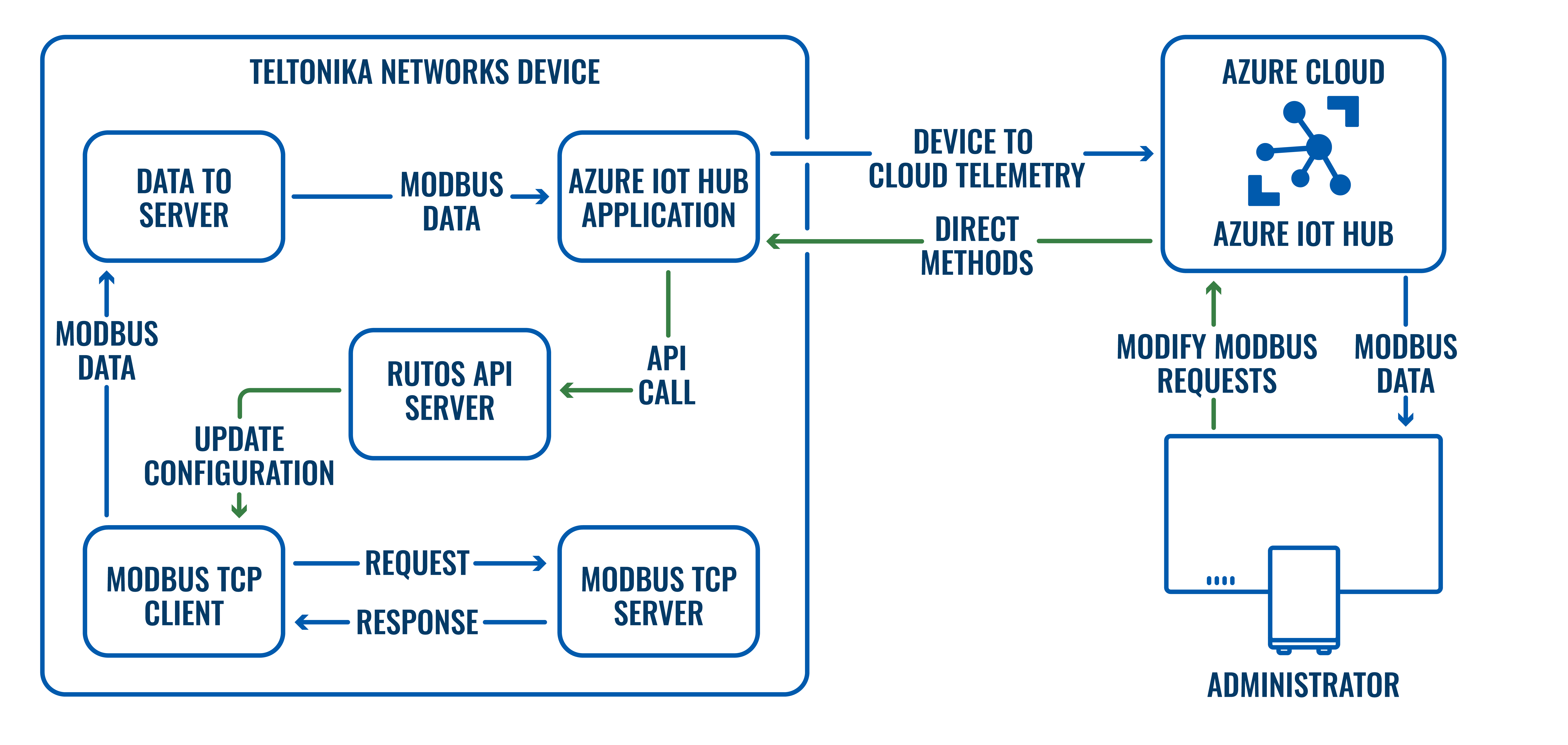 This article contains instructions on how to configure a Teltonika Networks device in order to connect to the Azure IoT Hub. Azure IoT Hub is a managed service hosted in the cloud that acts as a central message hub for communication between an IoT application and its attached devices.