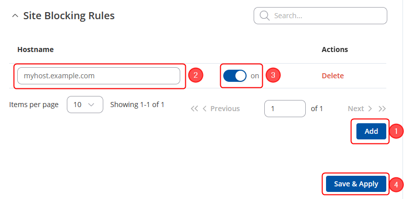 - Specify a 'Hostname' that you wish to block.