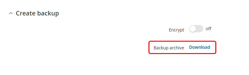 - Go to the device WebUI → System → Maintenance → Backup page and click the Download button under the Create backup tab.