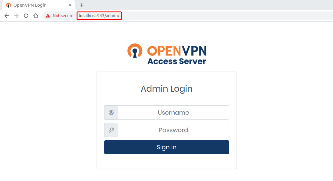 - Login to your OpenVPN Access Server as administrator by entering this link into your web browser: https://localhost:943