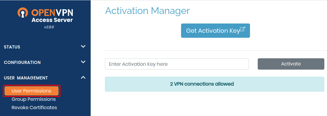 Note: Installed OpenVPN Access Server only provides 2 VPN connections.