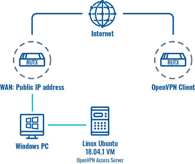 This article provides an extensive configuration example with details on how to install an OpenVPN Access Server in a virtual machine connected to a Teltonika Networks router, also provides the Teltonika Networks router OpenVPN client configuration.