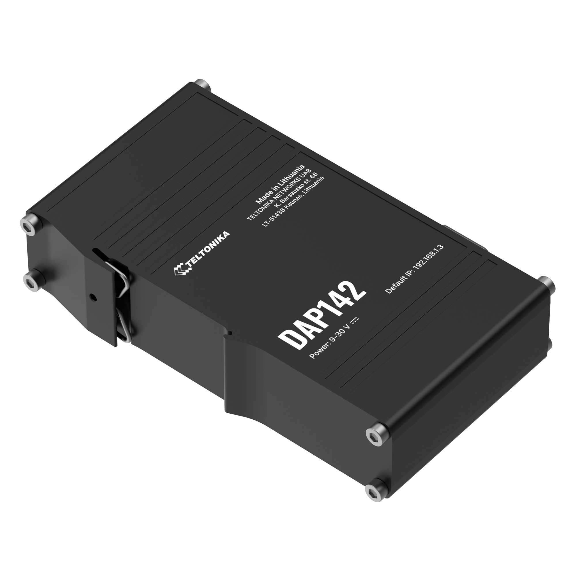DAP142 is a Teltonika industrial wireless access point with passive PoE, engineered for enhanced and reliable Wi-Fi coverage and performance in industrial environments. This access point is equipped with an RS232 port and two RJ45 ports, and is powered via a 3-pin power connector, making it ideal for specialised industrial applications. In addition to Wi-Fi 4 capabilities, the DAP142 supports Wi-Fi mesh, Fast Roaming, and up to 50 simultaneous connections. With an integrated DIN rail bracket, durable aluminium casing, and plug-and-play functionality, this wireless access point provides simple installation and configuration at minimum effort.
