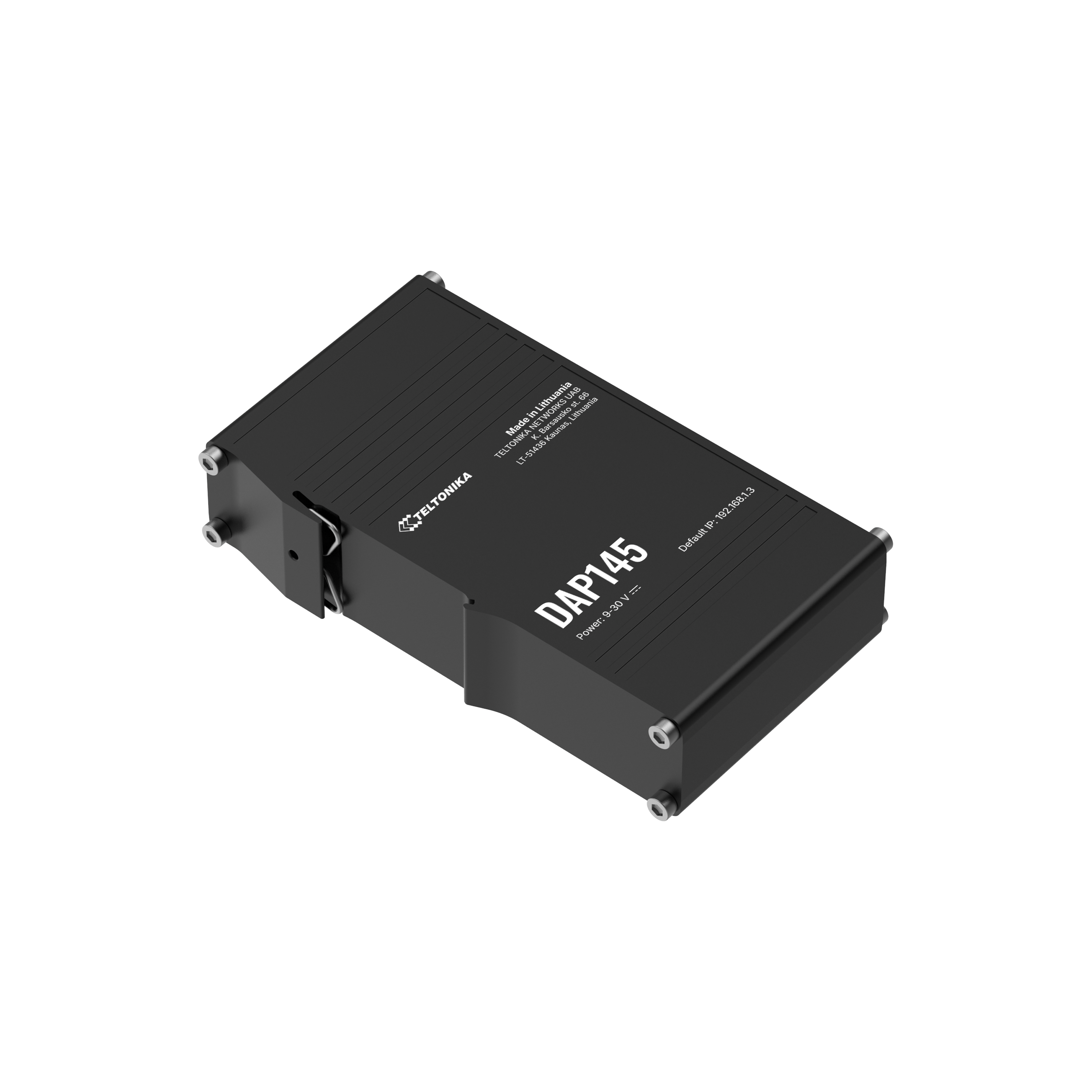 DAP145 is a Teltonika industrial wireless access point with passive PoE, engineered for enhanced and reliable Wi-Fi coverage and performance in industrial environments. This access point is equipped with an RS485 port and two RJ45 ports, and is powered via a 3-pin power connector, making it ideal for specialized industrial applications. In addition to Wi-Fi 4 capabilities, the DAP145 supports Wi-Fi mesh, Fast Roaming, and up to 50 simultaneous connections. With an integrated DIN rail bracket, durable aluminium casing, and plug-and-play functionality, this wireless access point provides simple installation and configuration at minimum effort.