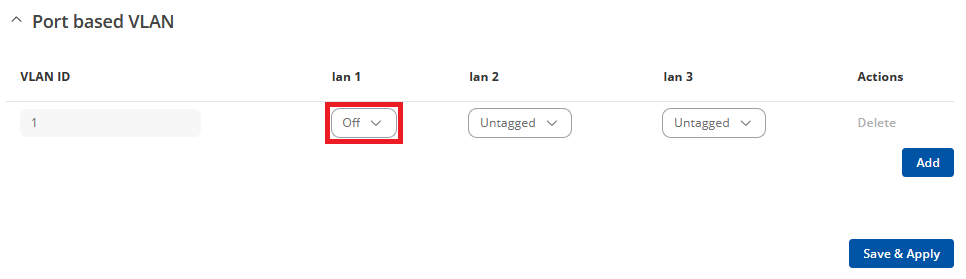 Go to Network -> VLAN -> Port based. Choose the desired ports and select the "Off" option. Press "Save & Apply".