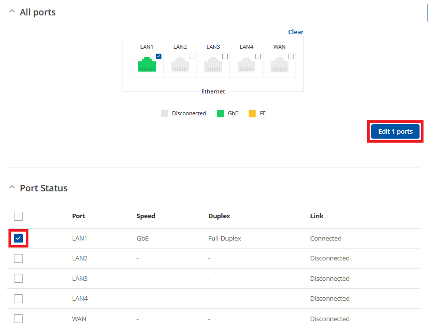 Important note: if you disable all LAN ports on the router, you will lose access to the router via Ethernet. To regain access to the router you can: