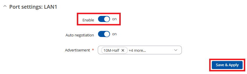 In the new window, disable the ports by turning the "Enable" slider off. Finally, press "Save & Apply".