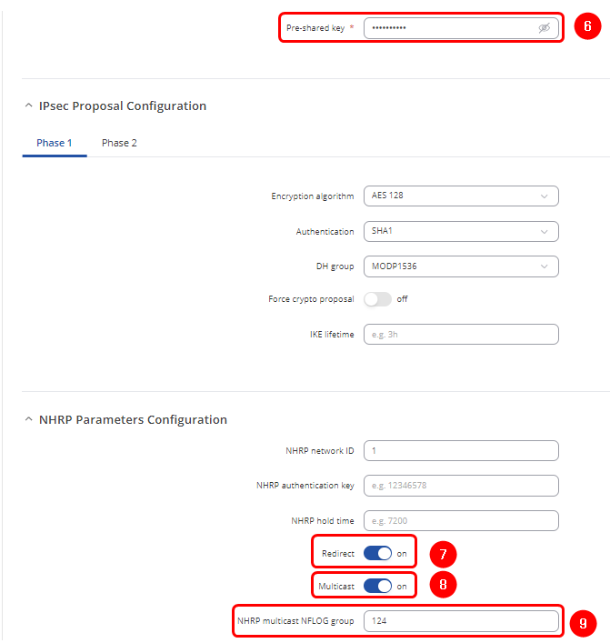 - 9. NHRP multicast NFLOG group - 124 (same number that was in the Hub's configuration)
