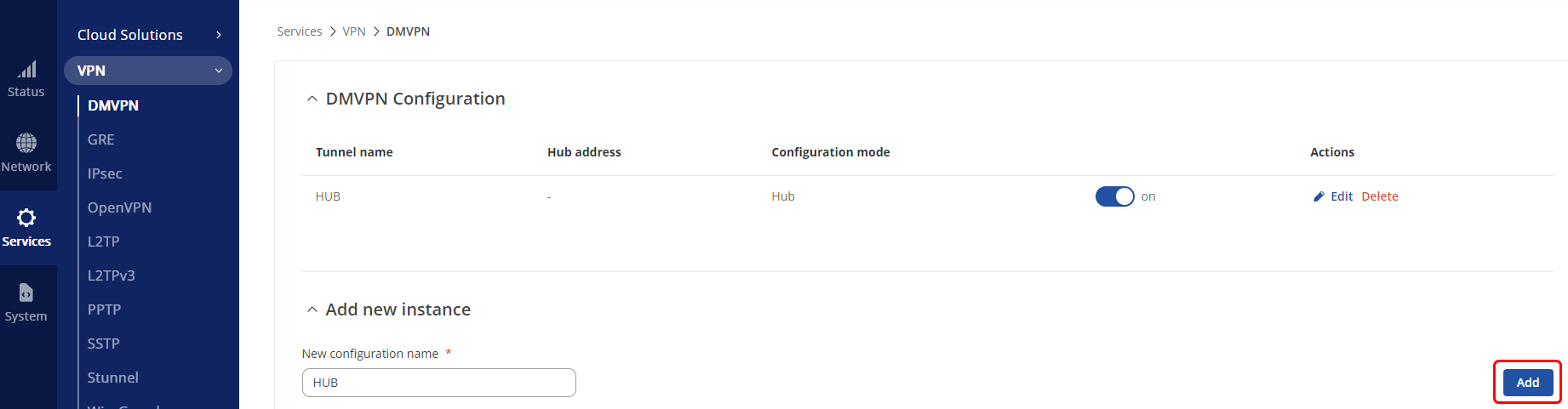 Navigate to Services → VPN → DMVPN