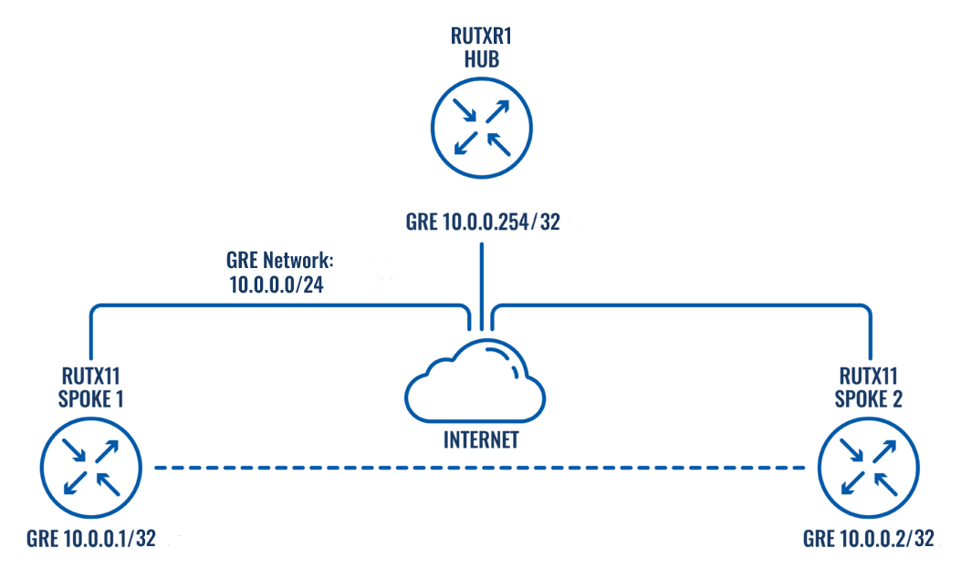 - DMVPN SPOKE1 - GRE interface address - 10.0.0.1 - LAN interface address 192.168.1.1