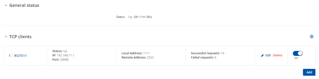 To test DNP3 protocol, we can go to Services → DNP3 → DNP3 TCP Client and edit the TCP client that we had set up: