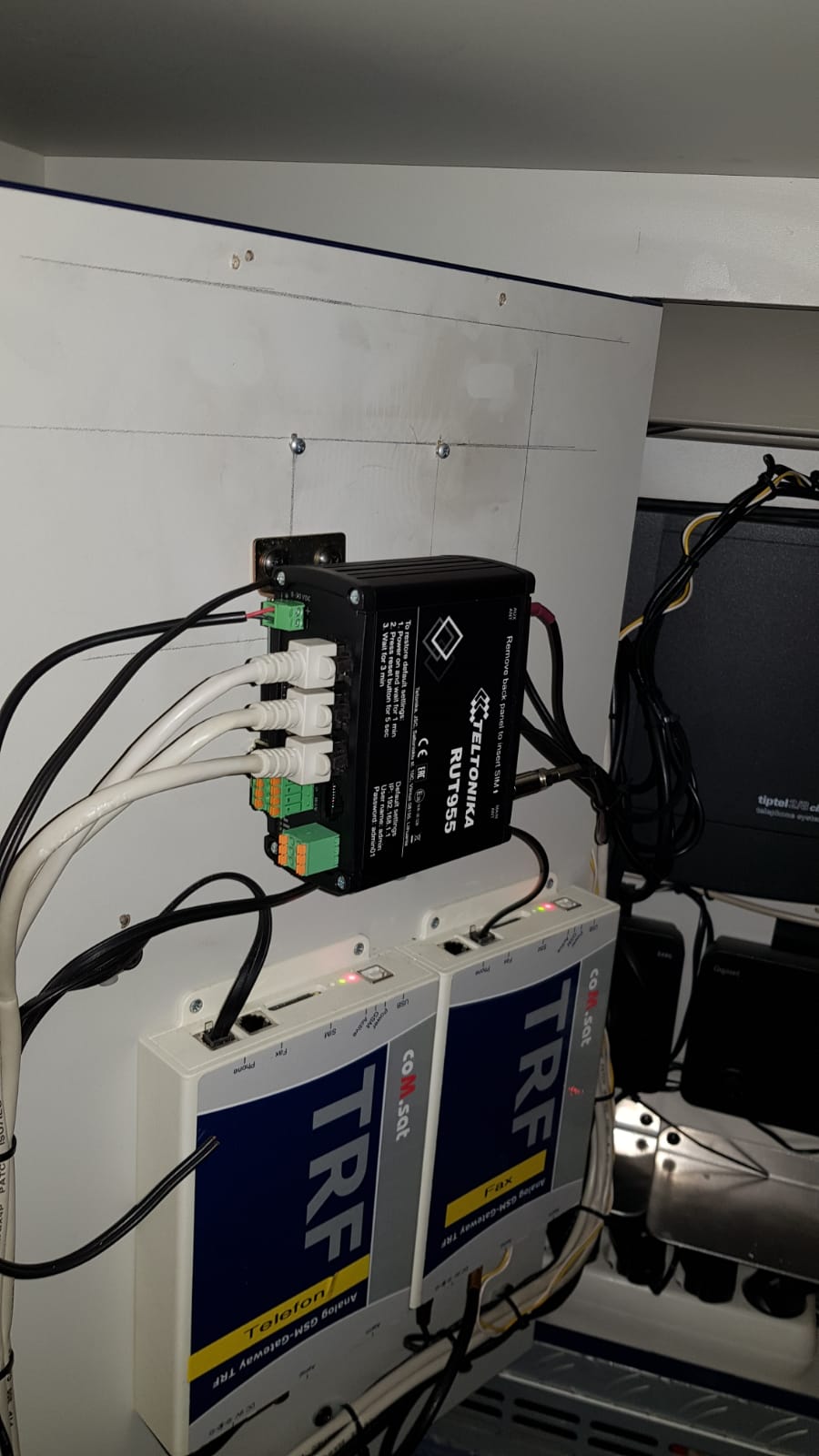 Changing the old router to the RUT955 did not require replacing the external antenna that is mounted on the roof. There was also the possibility of attaching another antenna. If necessary, it is possible to connect a WAN cable, it automatically connects to this network and disables the mobile internet, this is also useful to do updates in the firehouse without using the mobile internet data volume.