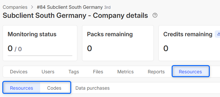 on the company you belong to. - Navigate to Resources tab and open either Resources or Codes section.