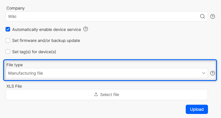 This section tells you how to import devices using the manufacturing file provided by Teltonika Networks with your order. If you have not received such a file, please contact your Teltonika Networks sales manager.
