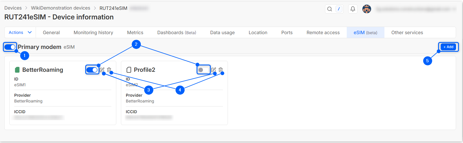If eSIM is inactive and you need to activate it or you desire to change which profile should be active or just modify profile's name, these changes can be made for your selected single eSIM capable device.