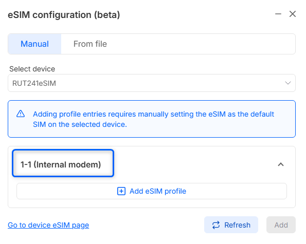 - Manual - for manual eSIM profile management on single selected device only.