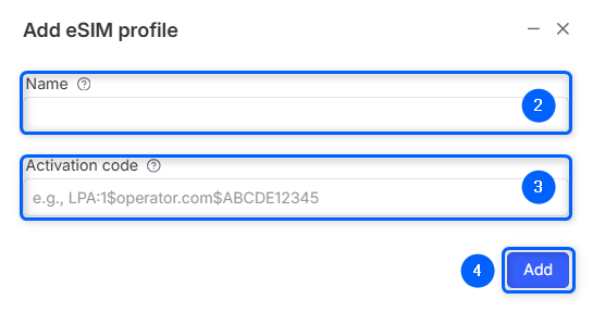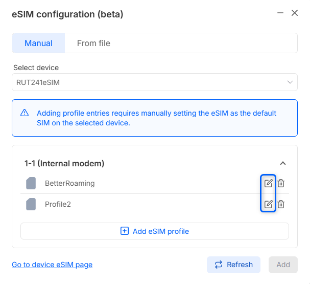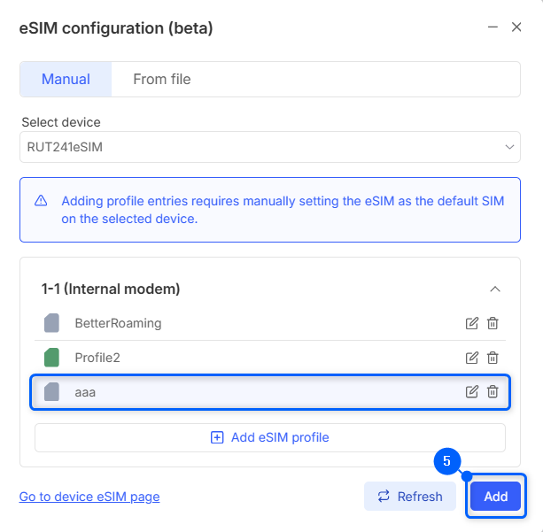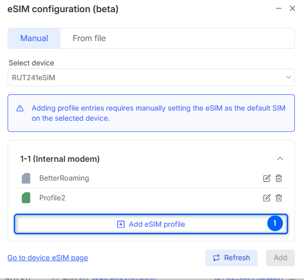 - Click Add eSIM profile to add new profile.