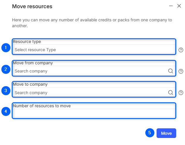 - Type of resource you will be moving ( Credit / Management pack / Connect data pack).