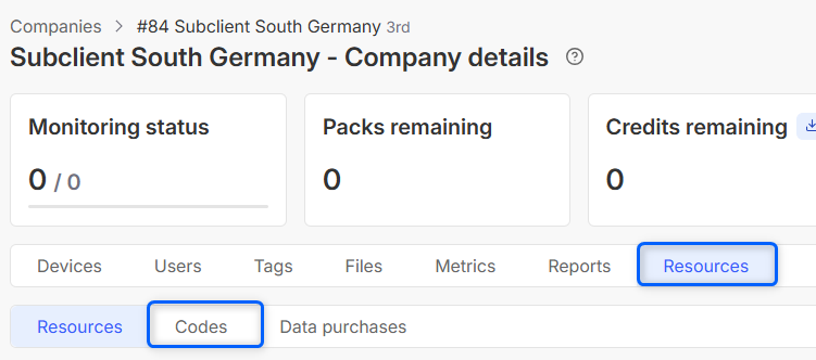 on the company you belong to. - Navigate to Resources tab and open either Resources or Codes section.