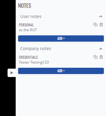 In CLI (SSH and Telnet) Remote access connections, there is an option to keep notes for any relevant information, e.g. connection credentials.