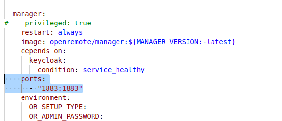 1883 was used for MQTT protocol. To use this port you need to add it to your docker-compose file.