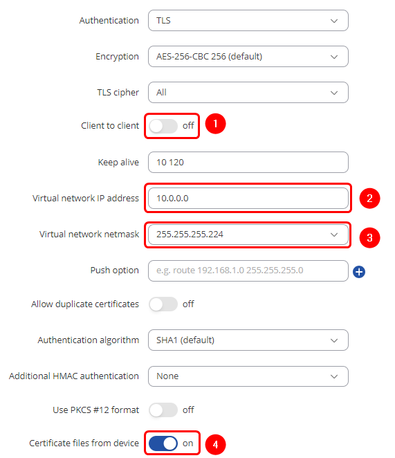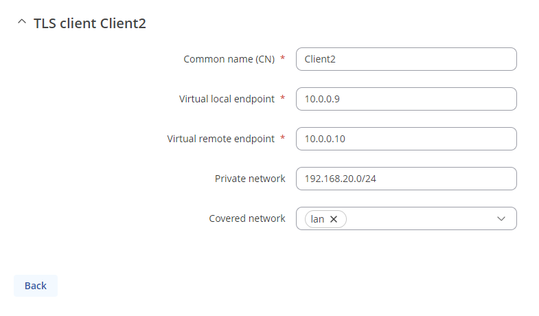- Covered network - Which LAN subnet should clients be able to communicate with in the OpenVPN server