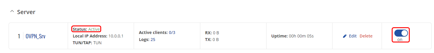 Press "Save & Apply", enable OpenVPN server and check if the server is online.
