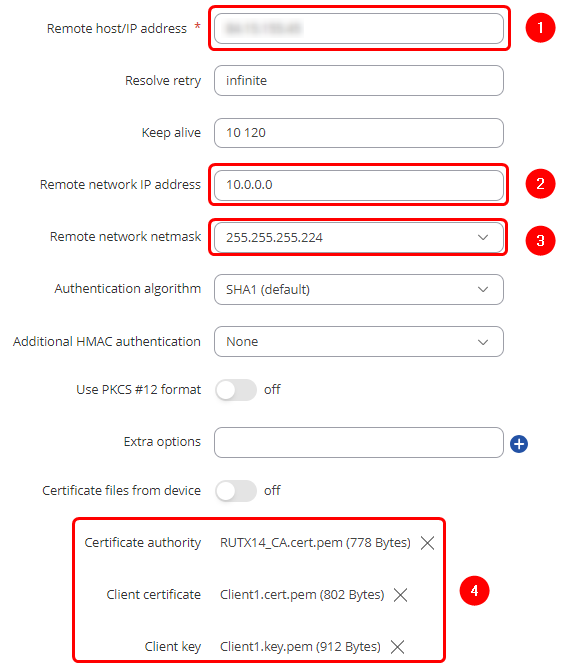 1 - Remote host/IP address - Public IP of the OpenVPN server's router