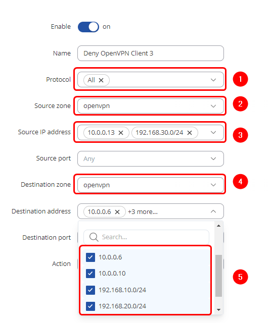 5 - Destination address - other client OpenVPN remote endpoints and LAN subnets