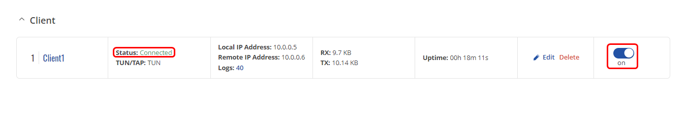 Press "Save & Apply", enable OpenVPN client, and check if the connection is made
