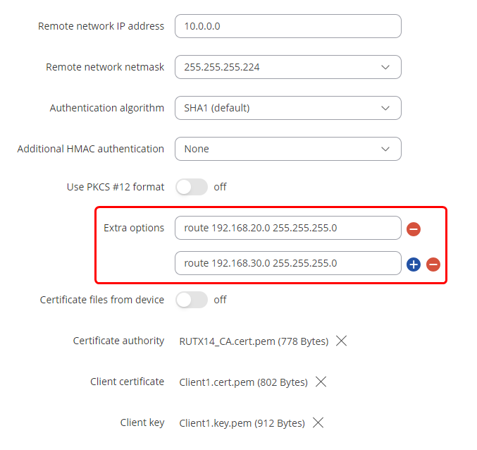 4 - Add the certificates from the OpenVPN server - Certificate Authority, Client certificate, and Client key which we downloaded in the Certificate Generation step.