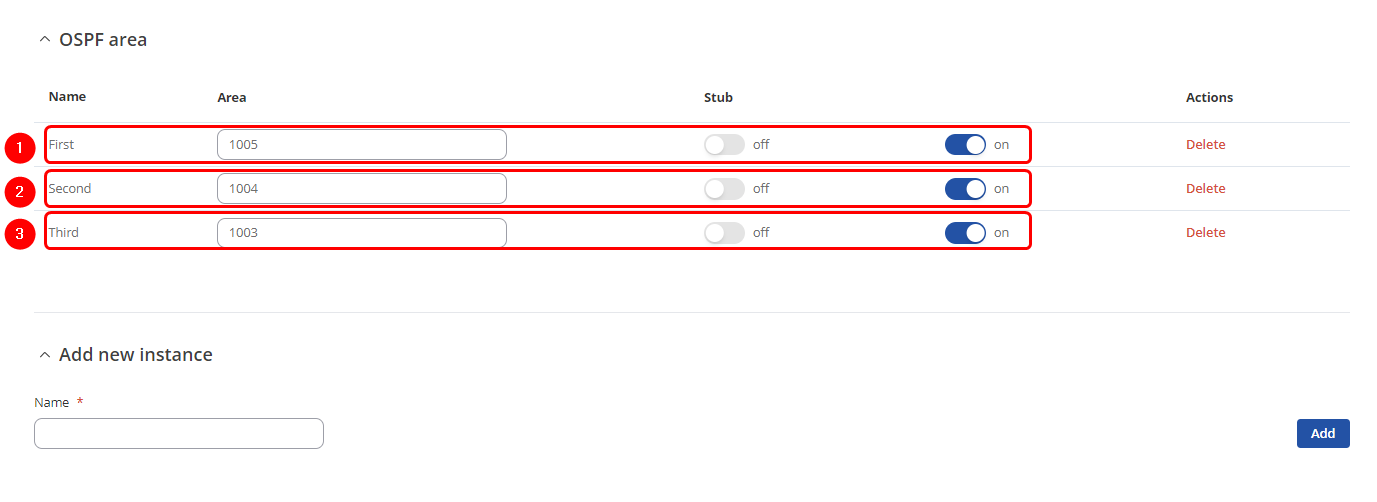 Open router‘s WebUI and navigate to Network → Routing → Dynamic routes → OSPF configuration: