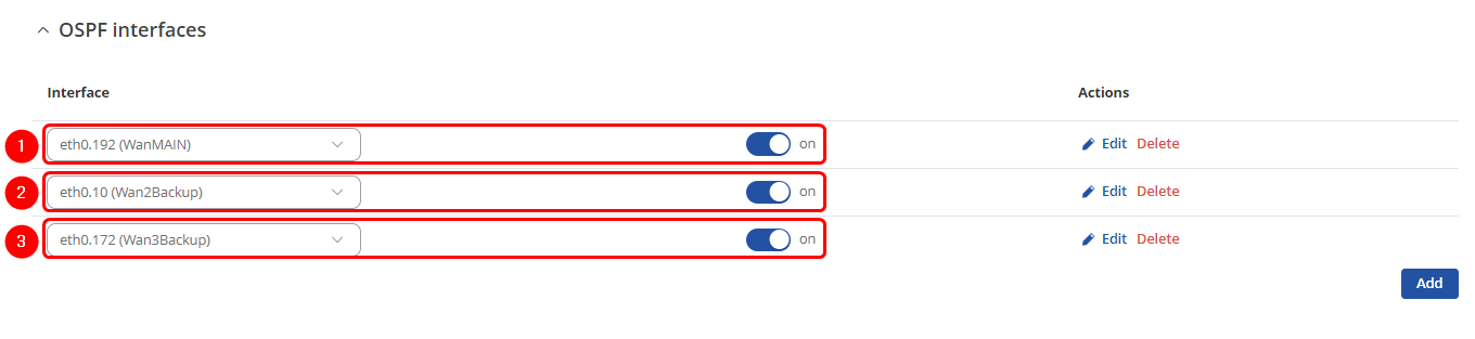 - Name: WAN3 | Netwrok: 172.16.110.0/30 | Area: Third | on