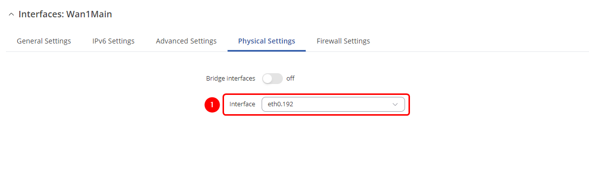 - Select Interface: eth0.192 (WanMAIN) | Enable Interface: on