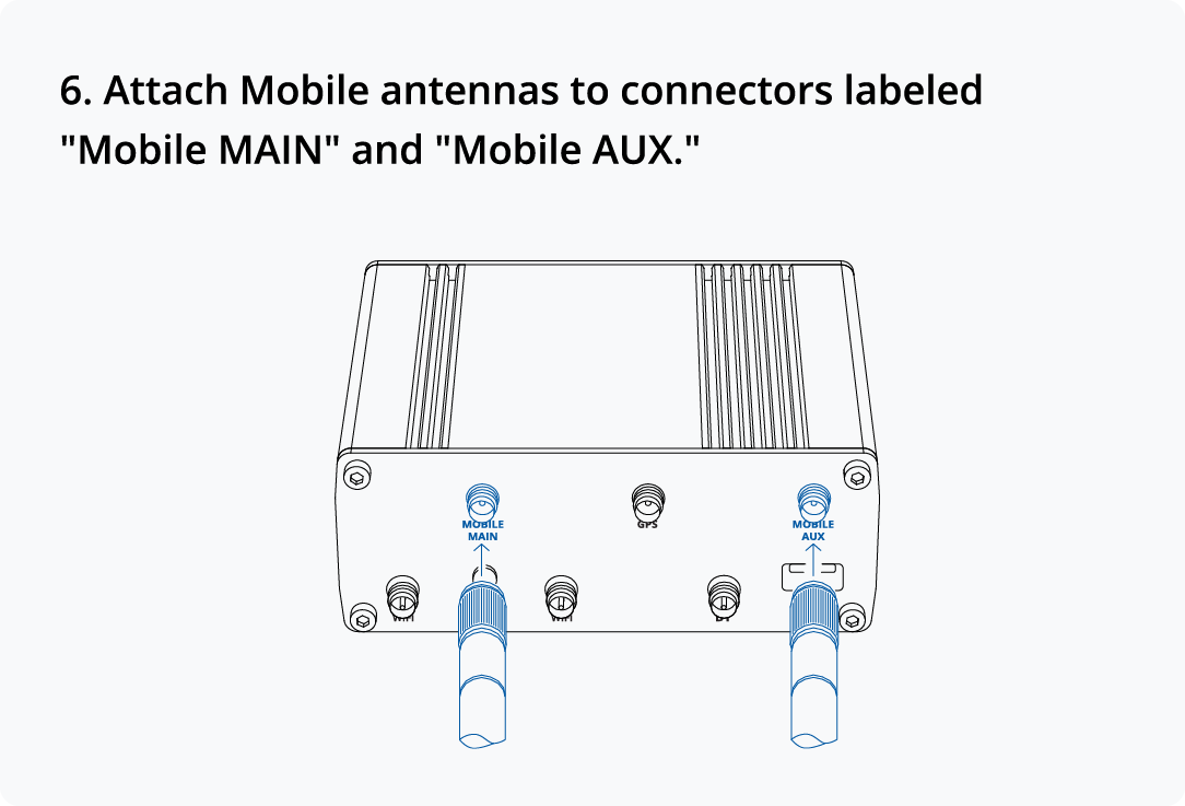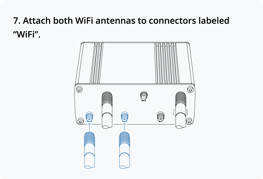 External antennas used with RUTX11 must be installed to provide a distance of at least 20 cm from any people and must not be co-located or operated in conjunction with any other antenna or transmitter.