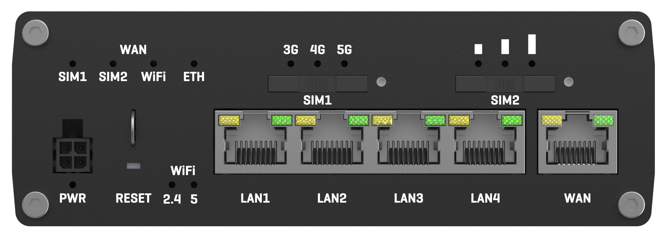 This Wiki page contains the online version of the Quick Start Guide (QSG) for the RUTX50 Router. Here you will find an overview of the various components on the front and back of a RUTX50 device, hardware installation instructions, first login information, device specifications, and general safety information. It is highly recommended to acquaint yourself with the Quick Start Guide before using the device. You can also locate a printed version of the Quick Start Guide in the packaging box of your device.