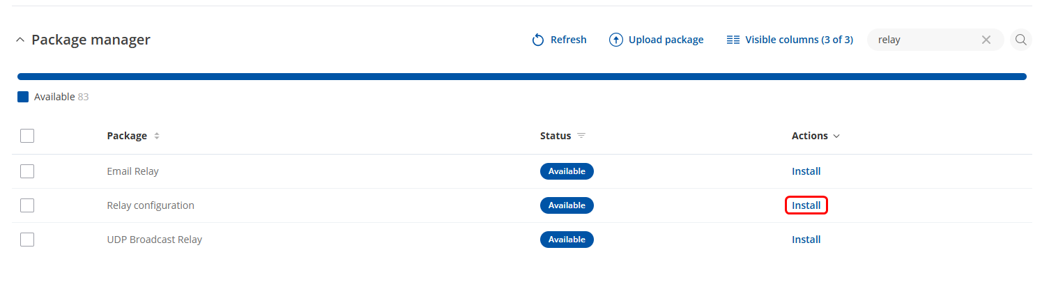 - Install Relayd package via WebUI by navigating to the System → Package Manager