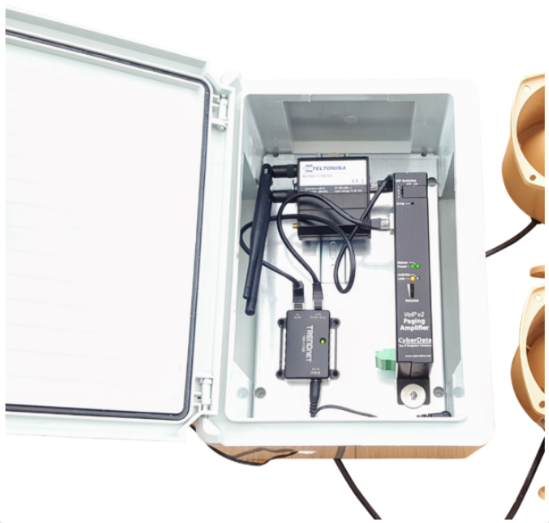 Burgess technologies developed an IP Loud Speaker Kit to Buddy IP Video Cameras. It is Cloud VoIP Configured with the help of RUT240 routers. It's delivered with its own unique phone number which is used for remote security audio messages. It can make live announcements, trigger up to x 9 stored audio files, connect additional security hardware devices to the AMP’s integrated relay board.