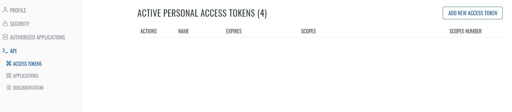 Once Two-Factor authentication is enabled, you can then head over to the API → Access tokens page of your Account settings to begin creating a Personal Access token.