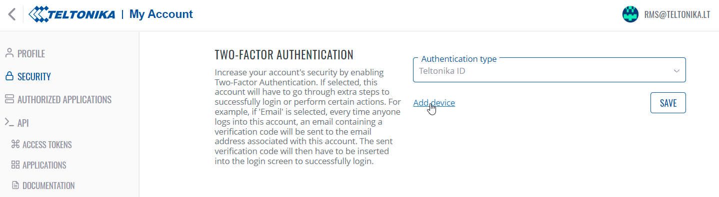This can be done by going to your RMS Account settings and then the Security page. Any Authentication type (other than None) is viable.