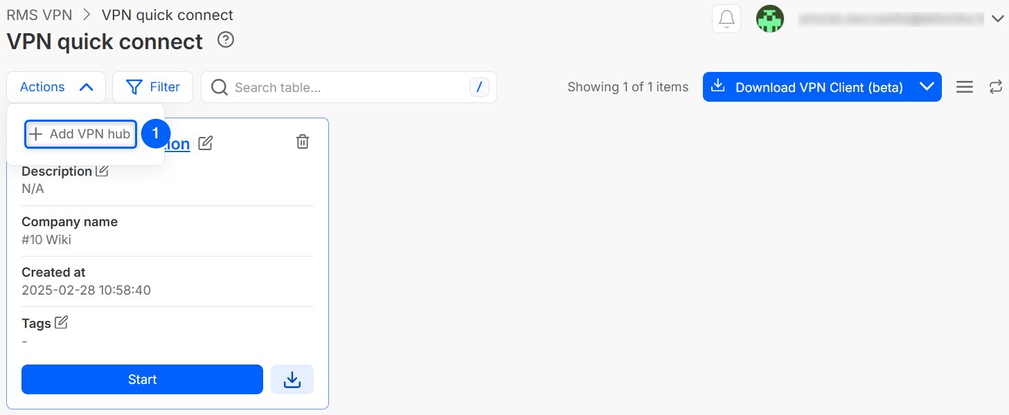 By clicking on Actions, and then Add VPN Hub a menu will pop up. There you'll have to: