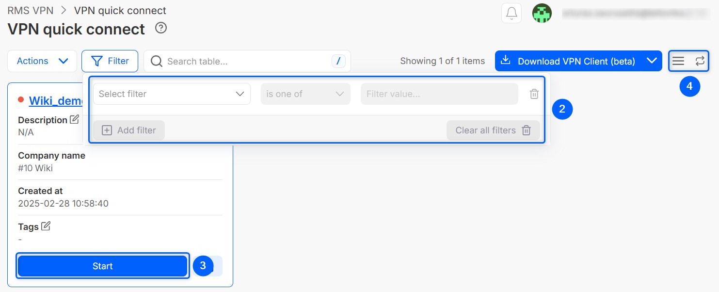 Quick connect lets you quickly set up an OpenVPN network. It is a hybrid between Remote Access and RMS VPN hubs. The main advantages compared to Remote Access - you can add more third-party devices by using .ovpn files, and compared to RMS VPN hubs - it can be set up much faster.