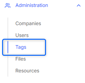 To manage all created tags go to the RMS web page, Left sidebar panel, (Administration → Tags), this will take you to the Tags overview.