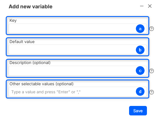 - Description - this is an optional field, can be used to clarify the purpose of the variable