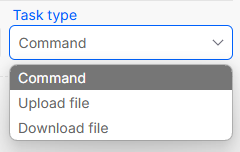 - Click on the [+] (Add new task) button to add a second task, once again select Command as a task type and insert the following text into command field:
