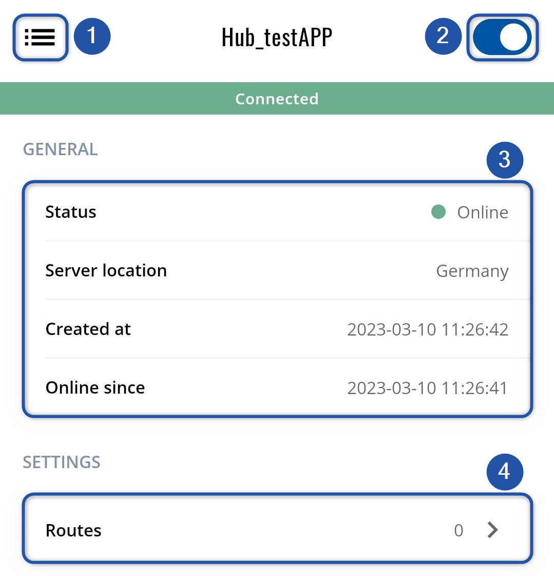 - After successful connection, you should see status Connected