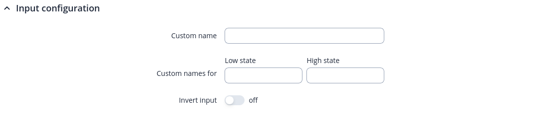 | Custom name | string; default: none | Sets custom name for this I/O. |